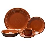 Fiesta20-Piece Place Setting manufactured by The Homer Laughlin China Company. America's largest domestic producer of dinnerware, and the sole manufacturer of all Fiesta dinnerware. All Fiesta pieces are Microwave safe, Oven-proof, Dishwasher safe, Freezerproof, Lead-Free, and Made in America with the implementation of many green practices. The very durable glaze is great for everyday use. Fiesta as a pattern has stood the test of time, and is typically passed down from one generation to the next. We have kept the pattern constant through the years so that you can count on us to be here when you decide to expand or change your collection. New pieces and colors are added every so often to keep things interesting. Currently, Fiesta is the most collected dinnerware in America..../ Fiesta 20-Piece Place Setting, Paprika / Fiesta